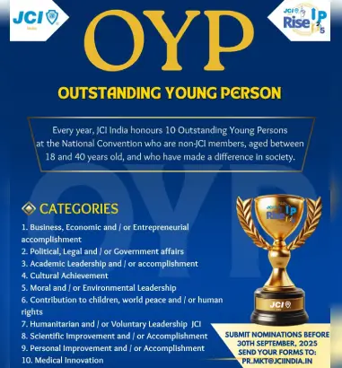 The JCI India Ten Outstanding Young Persons (JCI TOYP) program honors ten outstanding young people under the age of 40 each year. These individuals exemplify the spirit of the JCI Mission, and they serve as stellar examples of entrepreneurial spirit and ethical leadership. Whether through a business, scientific endeavors or their impact on society, these enterprising young leaders turn challenges into opportunities on a local and global level. The final ten TOYP nominees will be honored during the JCI India National Convention.